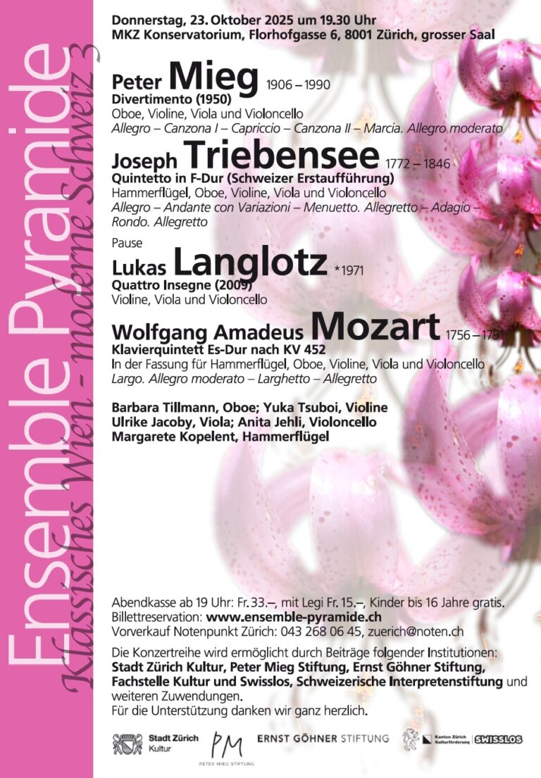 Werke von Peter Mieg, Joseph Triebensee, Lukas Langlotz und Wolfgang Amadeus Mozart